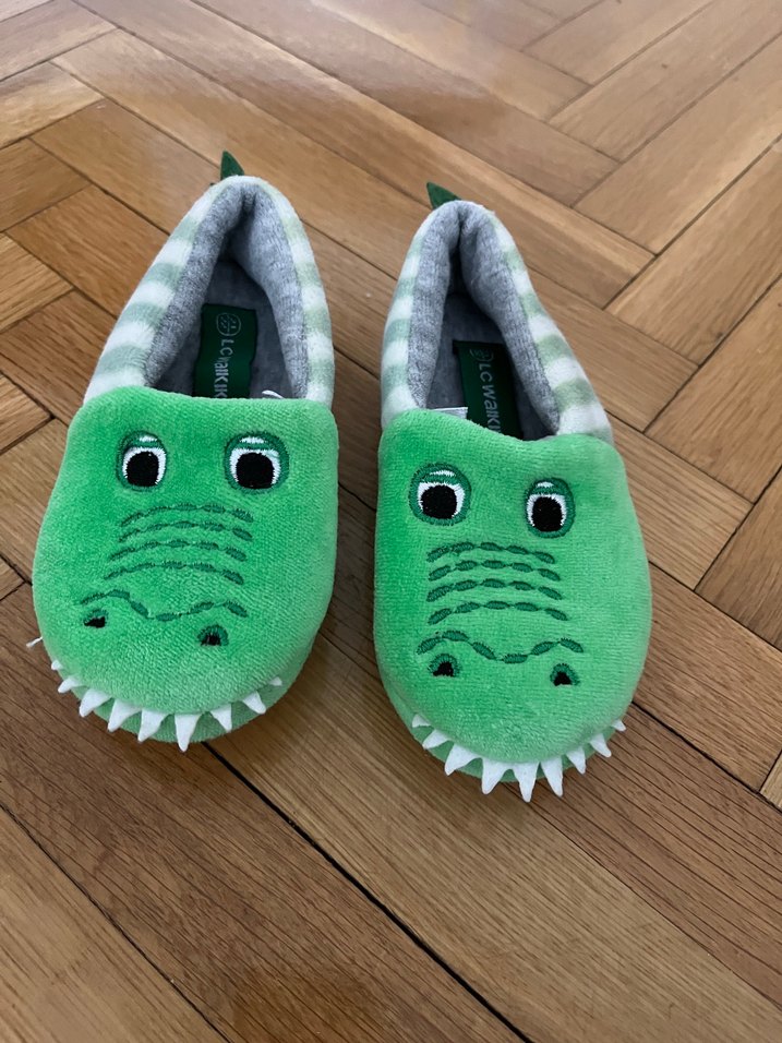 Yeşil renkli, timsah desenli erkek çocuk sıcak panduf. Kauçuk tabanlıdır. İnce ayaklı bebeklere daha iyi olur. Ayağına olmadığı için kullanılmadı