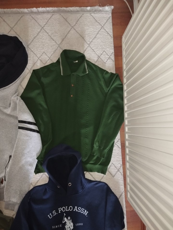 Yeşil renkte, polo yakalı ve uzun kollu erkek kazak. Yumuşak ve sıcak kumaştan, rahat kesim ve normal boyda, günlük kullanıma uygun.