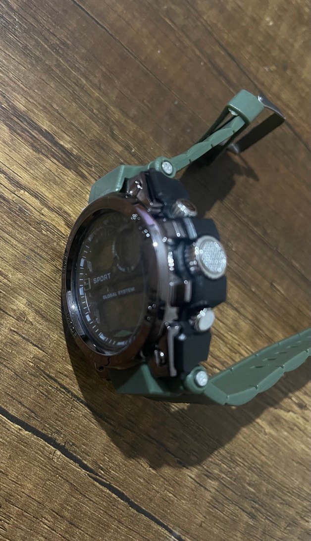 Yeşil kayışa sahip erkek spor saati, dijital ve analog saat, tarih, gün ve AM/PM göstergeleri içerir. Suya dayanıklı ve ışık, mod, başlat, sıfırla düğmeleri bulunur . ☄️NOT: BU SAATİ YANINDA EKSTRA OLARAK 300 TL DEĞERİNDE ÇOCUK SAATİ HEDİYE EDİYORUM KIZ VE YA ERKEK SEÇİM SİZİN