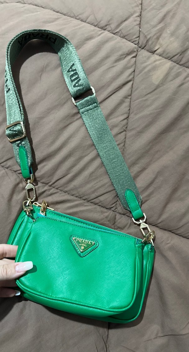 Yeşil deri kadın çanta, fermuarlı kapanış ve baskılı ayarlanabilir askıya sahip, sokak stili ve günlük kullanım için uygundur.