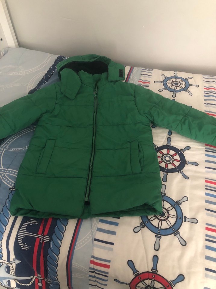 Yeşil renkli, fermuarlı ve boğazlı erkek çocuk montu. Yumuşak ve sıcak kumaştan, renkli sokak stili sunar.