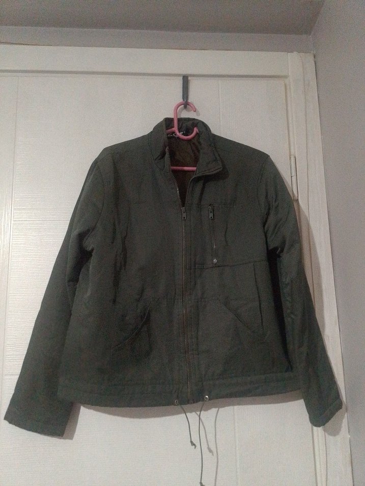 yeşil ceket, fermuarlı ön ve gevşek kesime sahiptir. Notlu yaka, uzun kollu ve yumuşak, sıcak kumaştan yapılmıştır, günlük kullanıma uygundur.