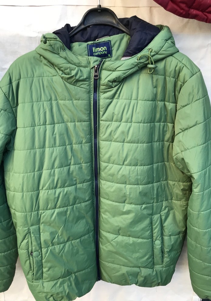 Yeşil parlak renkte, fermuarlı ve bol kesim erkek mont. Uzun kollu, cep iç kısımda ufak bir sökük var depoda kirlenmiş tek fiyat iki kol arası 60 boy 70