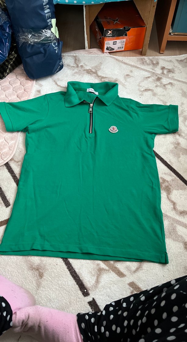 Yeşil renk, yakalı, kısa kollu erkek polo tişört. Önde fermuar ve renkli logo detayı bulunur. Normal boyda, dar kesim, günlük kullanım için uygundur.