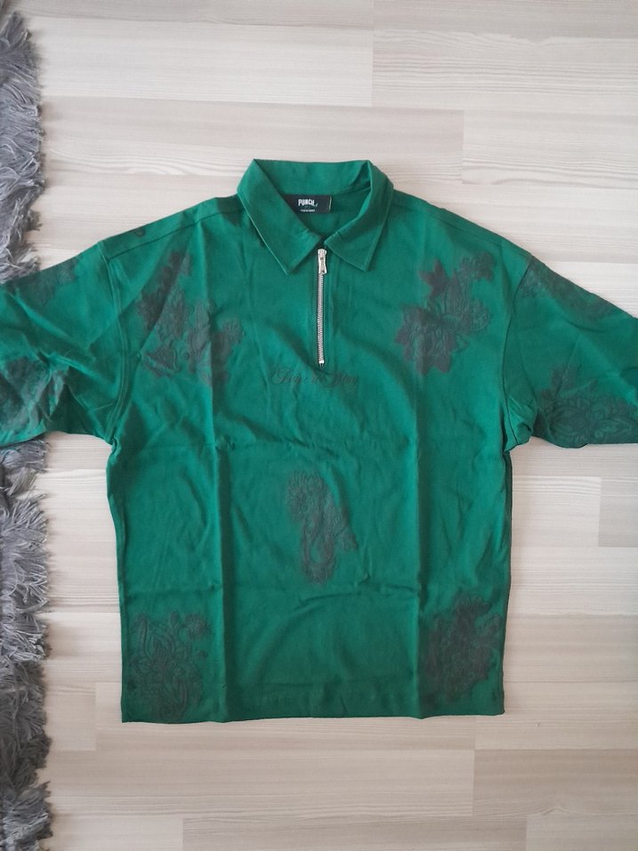Yeşil Fermuarlı Erkek Oversize Polo Tişört