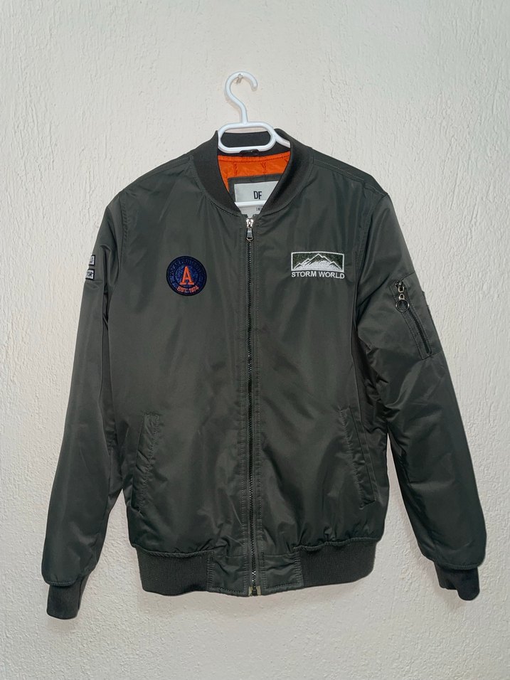 Bu yeşil ceket, yuvarlak yakalı ve uzun kolludur. Fermuarlı ön kısmı ve baskılı detaylarıyla outdoor sokak stili için uygundur. HİÇ BİR SIKINTISI YOKTUR 1 HAFTA GİYİLMİŞTİR EN FAZLA ÖĞRENCİYİM YARDIM