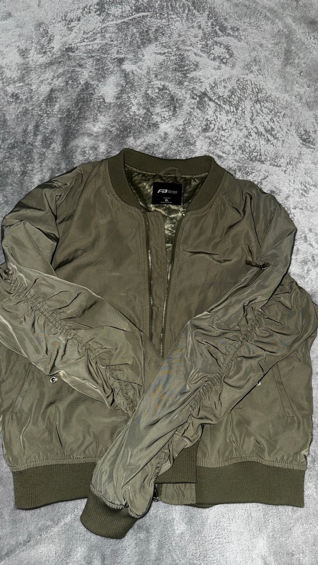 Yeşil renkli, fermuarlı, uzun kollu ve normal boyda kadın ceketi. Parlak sentetik kumaştan, sokak stili için uygun şık ve fit kesim.