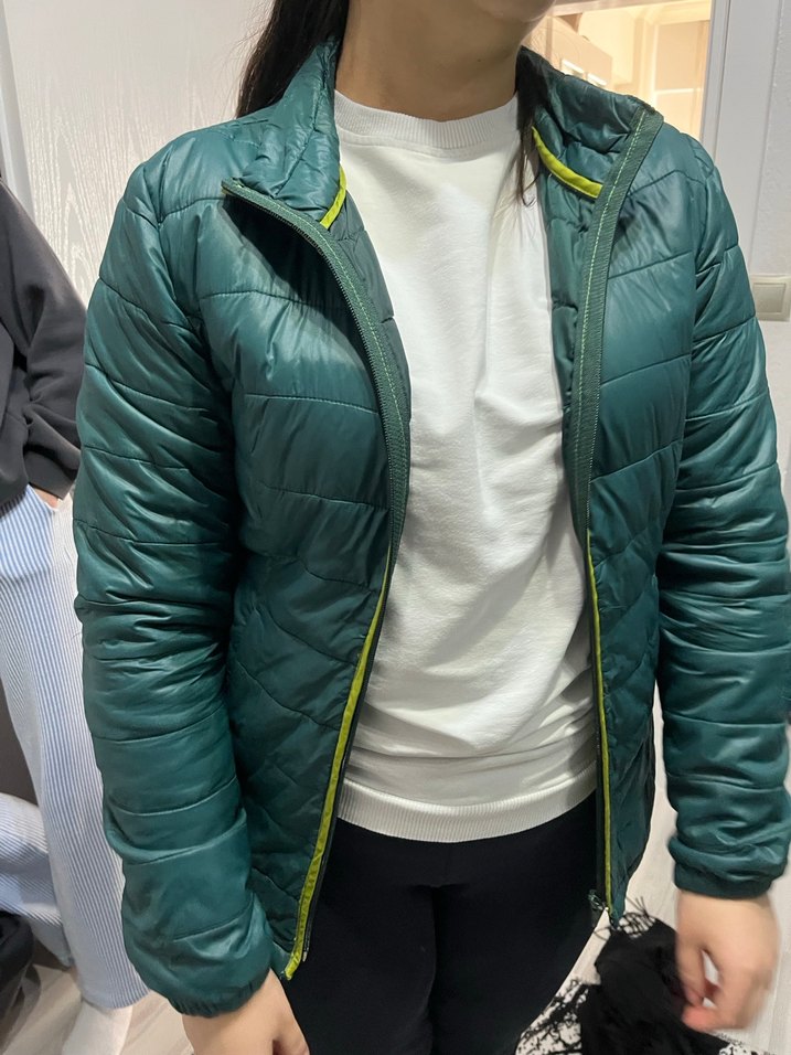 Fermuarlı, uzun kollu ve yüksek yakalı, hafif yeşil renkte yumuşak kumaştan yapılmış, normal midi boyda kadın ceketi. Günlük sokak stiline uygundur. 1-2 defa giyildi hiç bir kusuru yoktur