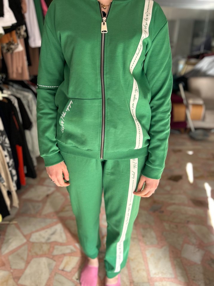 Fermuarlı önü, uzun kollu ve bisiklet yaka yeşil kadın eşofman takımı. Ürün yeni ve etiketlidir. Tam kışlık kumaşı çok kalitedir. M-L-XL bedenleri mevcut. Model üstündeki M bedendir.