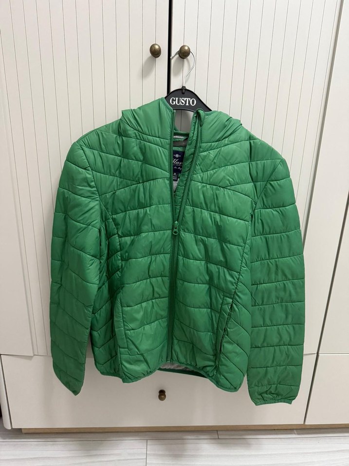 Parlak yeşil, fermuarlı, uzun kollu, yakası kesimli, normal midi uzunlukta, rahat kesim kadın mont. Yumuşak ve sıcak kumaş sunar.