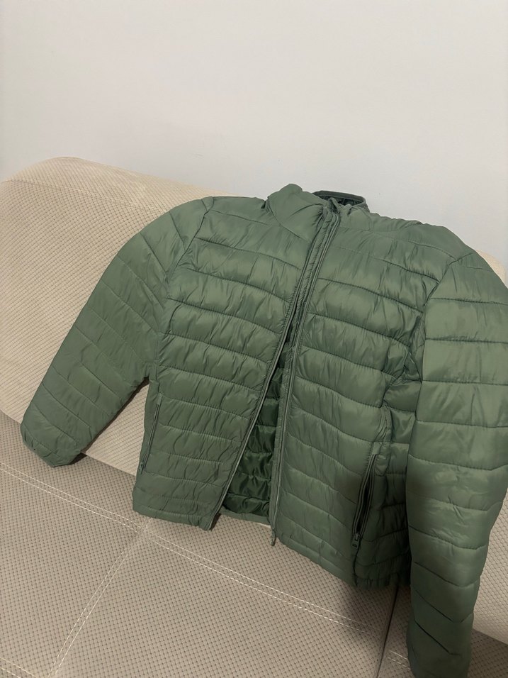 Yeşil renkte, fermuarlı, yüksek yakalı ve uzun kollu kadın montu. Sentetik kumaştan yapılmış, midi boy ve günlük kullanıma uygun rahat bir model. Beden uymadığı için satıyorum. Fermuarı sıkıntılı
