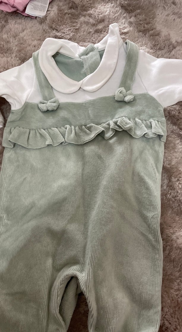 bebek kız tulumu, fırfır detaylı ve beyaz yakalı üstüyle birleşik. 2 kes giyildi yeni