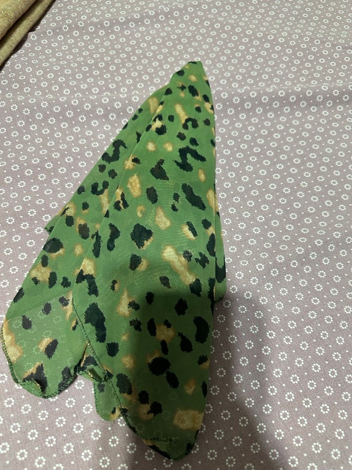 Yeşil renkte, parlak görünümlü ve fırfırlı detaylara sahip bohem tarzda kadın fuları, sentetik kumaştan üretilmiştir. Avant-garde ve hippie stilini yansıtır.