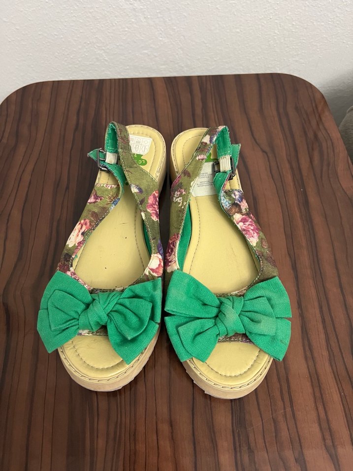 Yeşil Fiyonklu Kadın Dolgu Topuk Sandalet