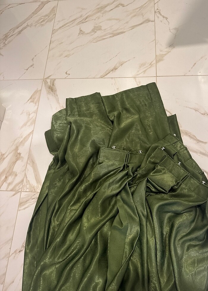 Yeşil renk birer metrelik iki tane fon perde sorunsuz