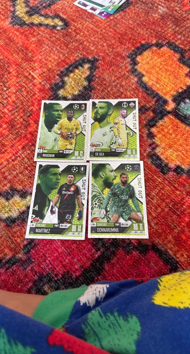 Maguain, De Gea, Martinez ve Donnarumma gibi futbolcuların yer aldığı koyu yeşil zeminli canlı futbolcu kartları seti. ⚽