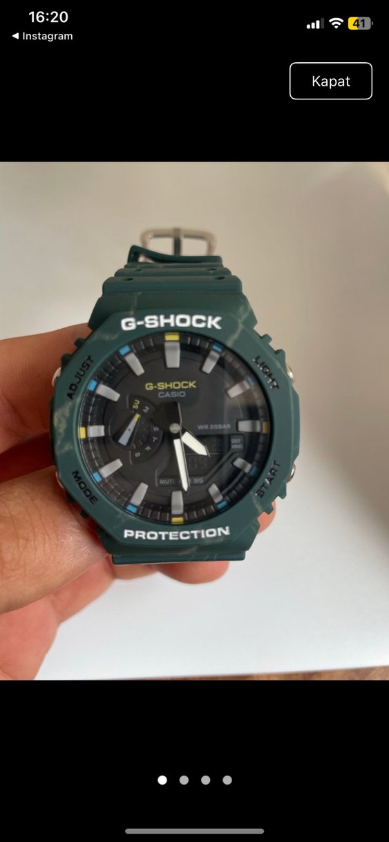 Yeşil renkte, koruma ve su geçirmez özellikli G-Shock erkek kol saati. Analog ve dijital göstergelere sahip, sokak stiline uygun tasarım. ⌚