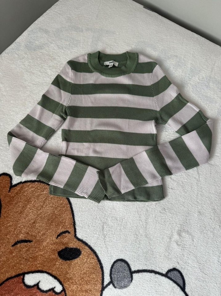 Yeşil Gri Çizgili Balıkçı Yaka Triko Kazak