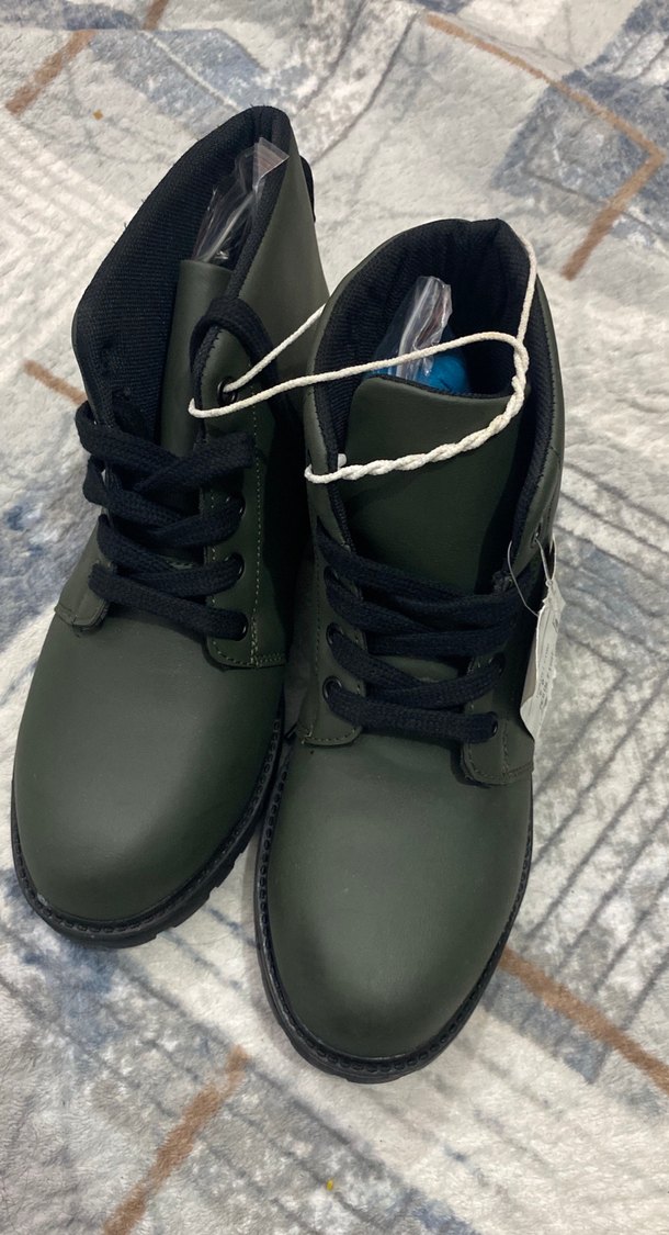 Yeşil renklerde, kemerli tasarıma sahip, rahat ve desensiz kadın sokak tarzı botları.