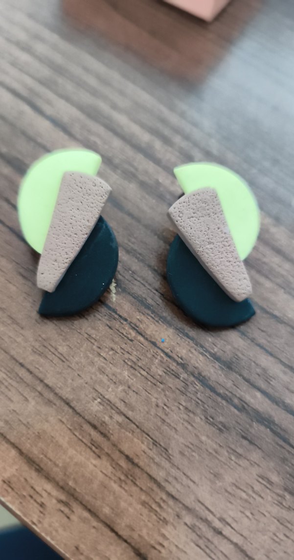 Yeşil, gri ve siyah renklerde minimalist tasarıma sahip çağdaş mini buton küpeler, dış mekan kullanımı için uygundur. el emeğidir