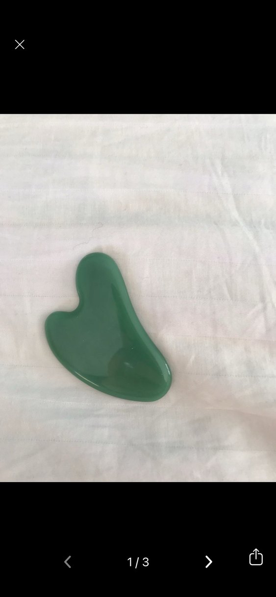 Yeşil gua sha yüz masaj taşı, cilt dolaşımını ve dokusunu iyileştirmek için kullanılır.