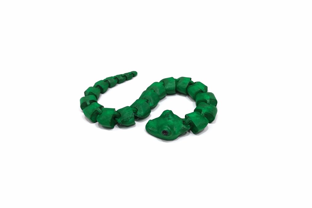 Hareketli eklemleri sayesinde bükülebilen, yeşil renkli yılan figürü. Canlı renkleriyle dikkat çeker.