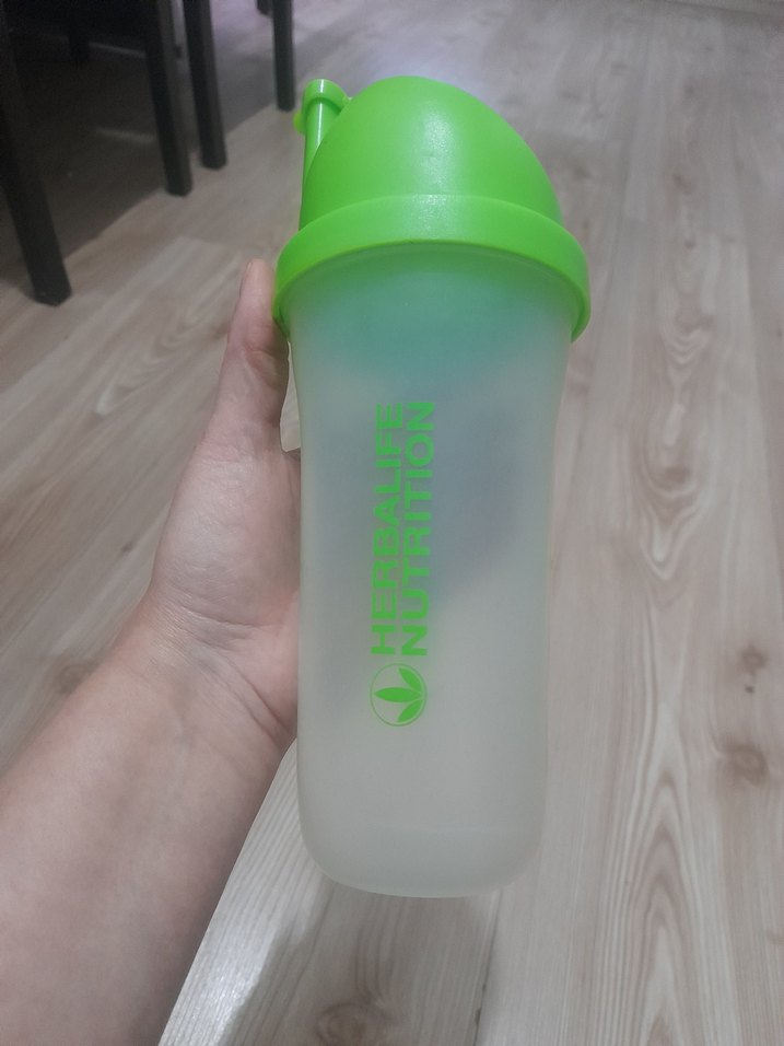 açık yeşil kapak ve Herbalife Nutrition logosu bulunan yarı saydam gövde vardır. Kullanımı ve beslemesi kolaydır.