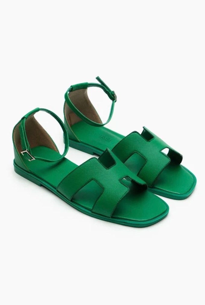 Yeşil hermes model sandalet