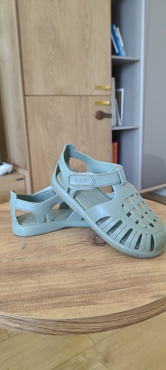 28 numara, igor tobby solid yeşil renkte, tokalı kayışlı, kauçuk malzemeden yapılmış, desen içermeyen sade ve bohem tarzda erkek ve kız çocuk sandaletidir. Rahat ve kullanışlıdır.