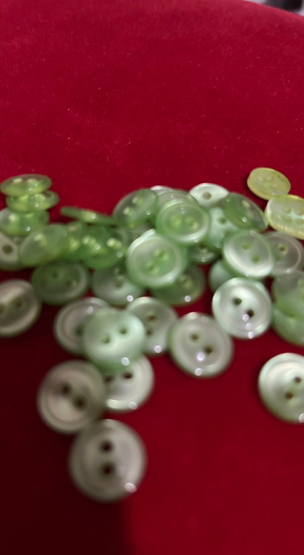 İki delikli küçük yeşil düğmeler, dikiş ve el işleri için uygundur. Projelerinize ince bir dokunuş katar.