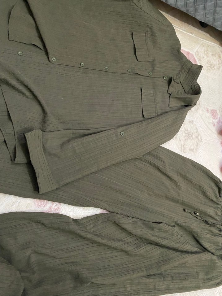 Kadın yeşil yumuşak keten takım, 1/80 uygun,