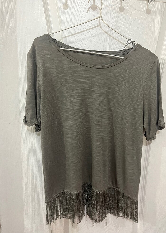 İnce yazlık kumaşlı püsküllü koyu yeşil tshirt