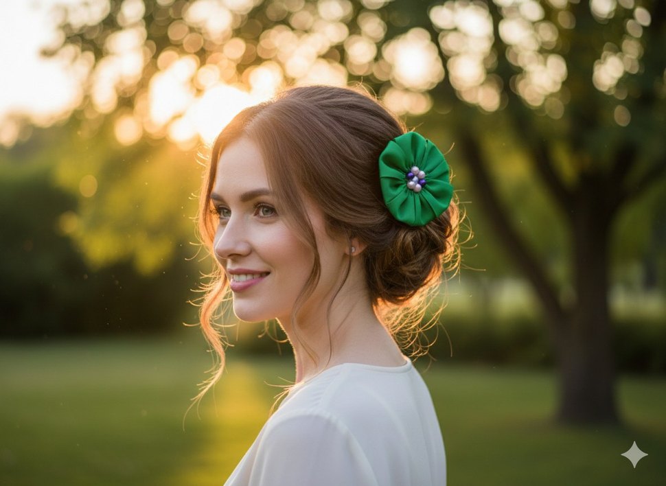 çift Yeşil İpek saten çiçek görünümlü Saç Aksesuarı