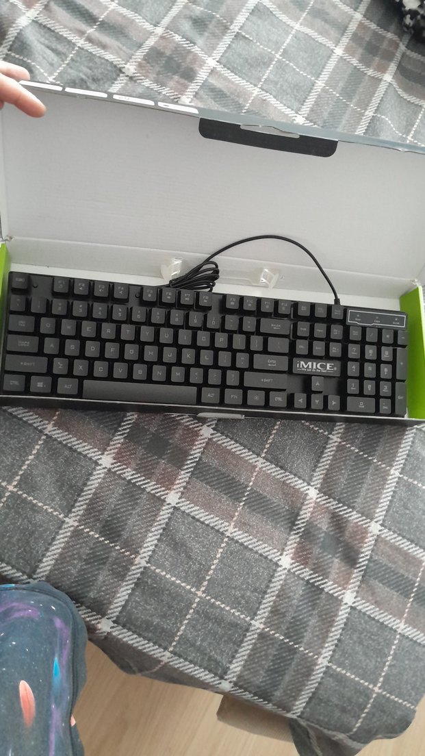 Koyu yeşil ışıklı tuşlara sahip, standart düzenli kablolu klavye. Multimedya kontrolleri içerir. ⌨️