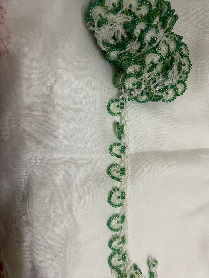 Yeşil İşlemeli Boncuklu Yazma kenarı