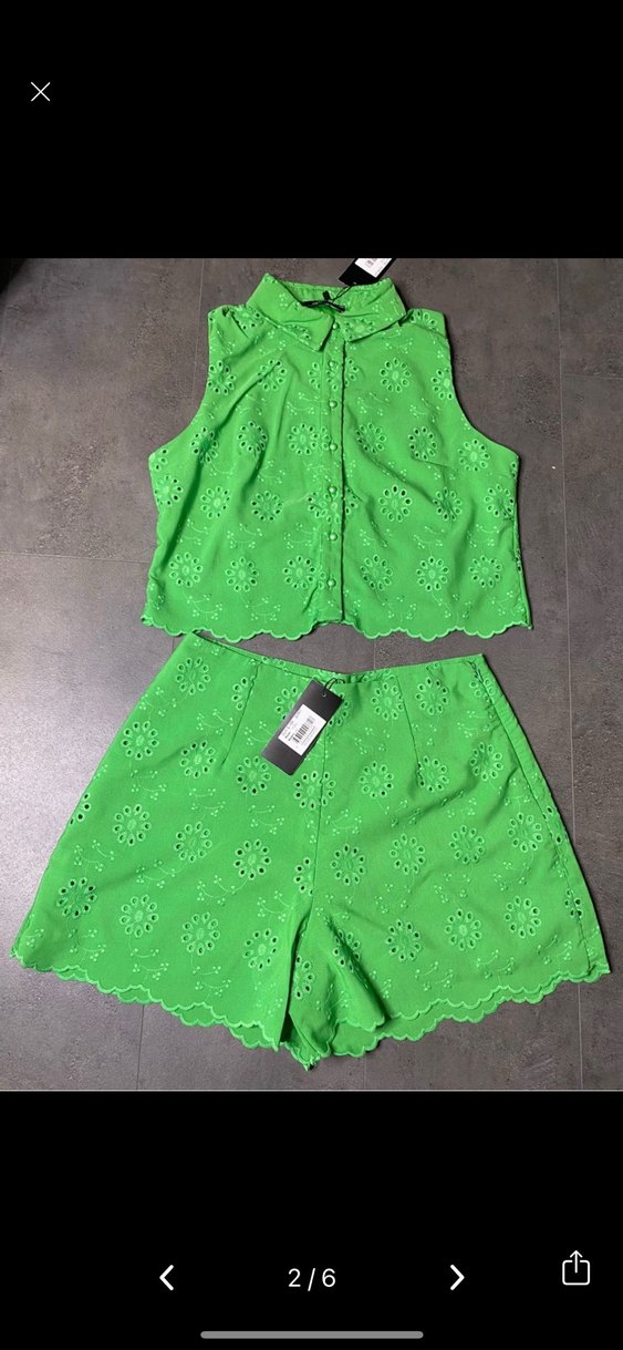 BİTİRİYORUZ! XL Beden (42) Bedenler Mevcuttur Ürün Yeni Etiketlidir iç göstermez astarlı %100 Pamuk Yelek Uzunluğu : 50cm Yelek En: 50cm Etek Uzunluğu: 50 cm Etek En:42 cm . Yeşil işlemeli dantel detaylı, kolsuz, straplez yaka ve bol kesimli mini takım, rahat sokak stili için uygun.
