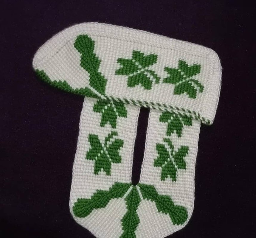 Yumuşak örme kumaştan yapılmış, yeşil işlemeli kız çorabı. Rahat ve dekoratif.