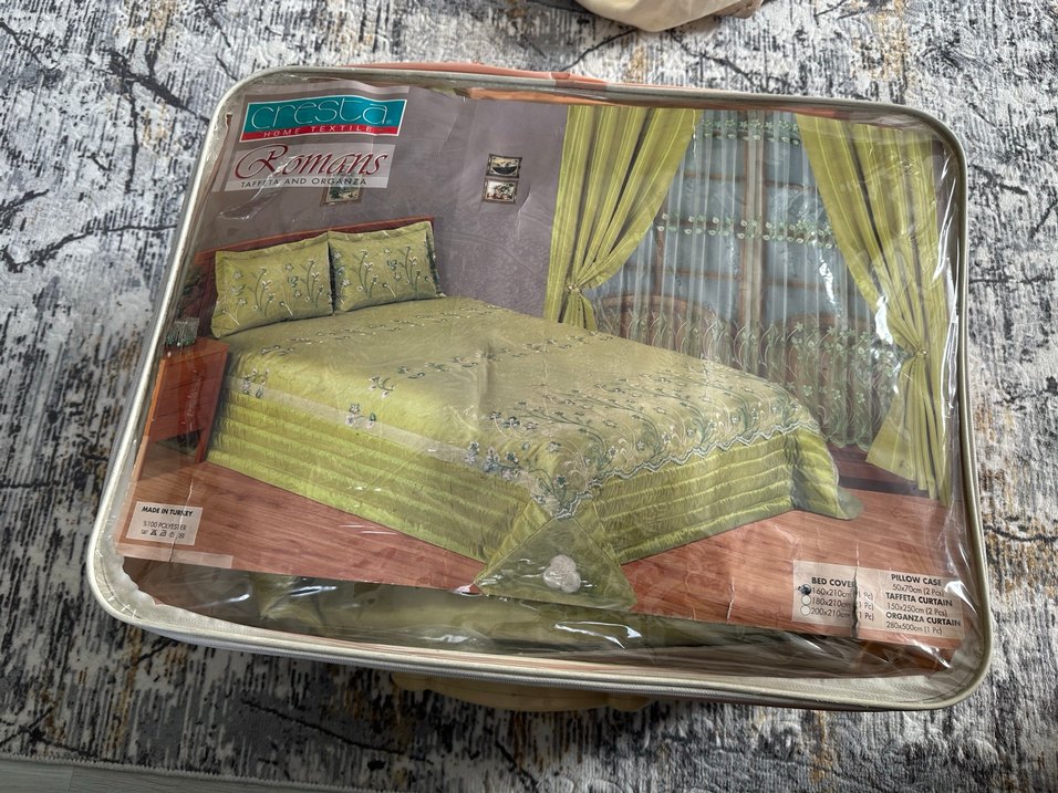 Yeşil İşlemeli Parlak Yatak Örtüsü