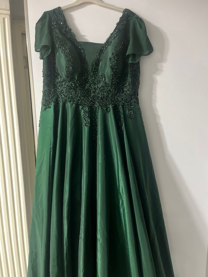 Yeşil İşlemeli Uzun Abiye Elbise