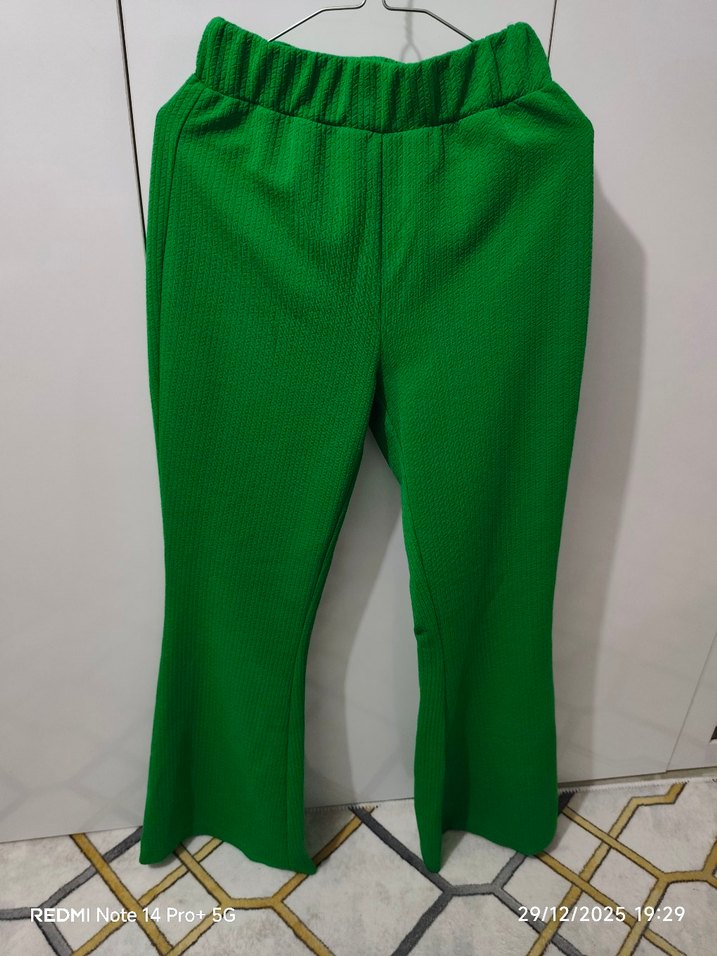 Yeşil, İspanyol ,regular fit, pilili ve elastik bantlı sentetik kumaş pantolon, rahat sokak stili için uygundur.
