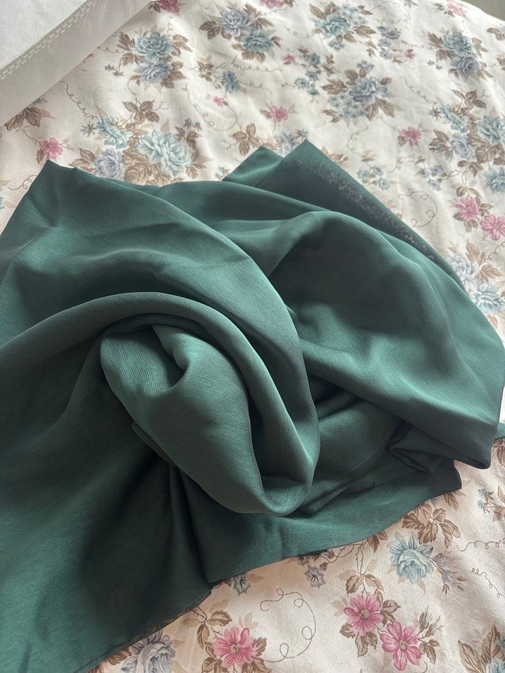 Yeşil janjan kumaş şal abiye şalı saten görünümlü