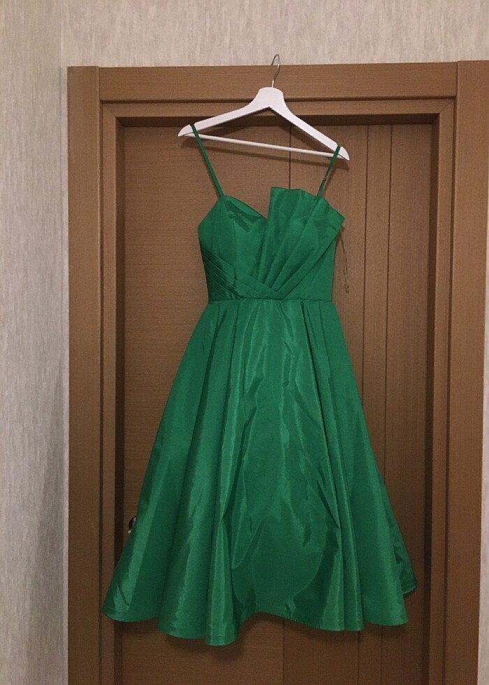 Yeşil Göğsünde drape detaylı güzel bir abiye Yeni&Etiketli Ayarlama kısmında ufak bir kırık var fotoğraflarda belirtilmiş