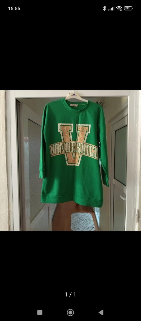 Yeşil renkli, uzun kollu ve bisiklet yaka, bol kesim triko sweatshirt. Parlak baskılı Vanderbilt yazısı ve cırt cırt detayı bulunur, günlük kullanıma uygundur.