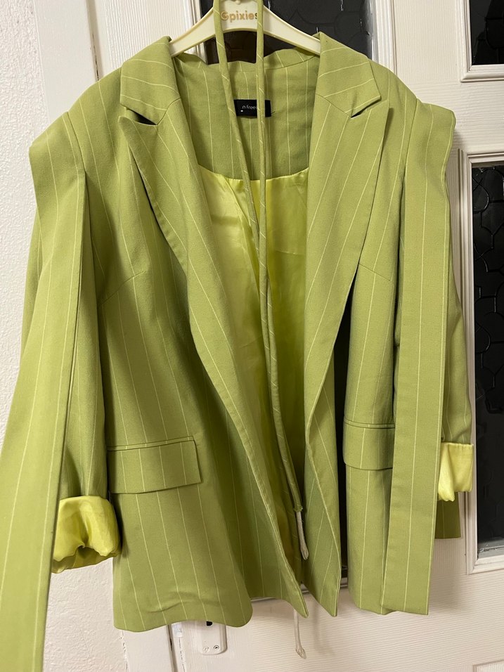 Yeşil kadın blazer ceket, keskin yaka, uzun kollu ve Regular fit ve midi boyda