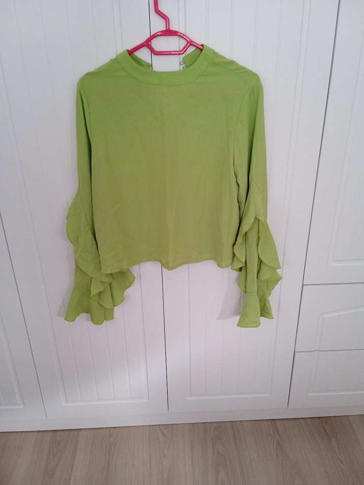 Yeşil Kadın Bluz, Volanlı Uzun Kol