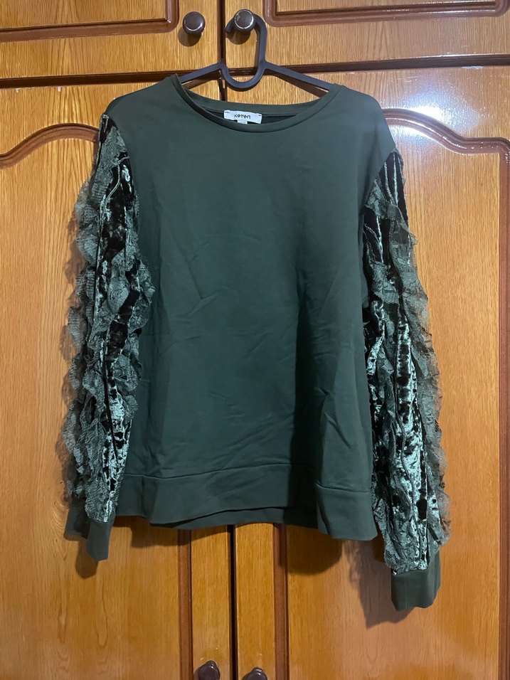 Yeşil Kadın Dantel Detaylı Sweatshirt