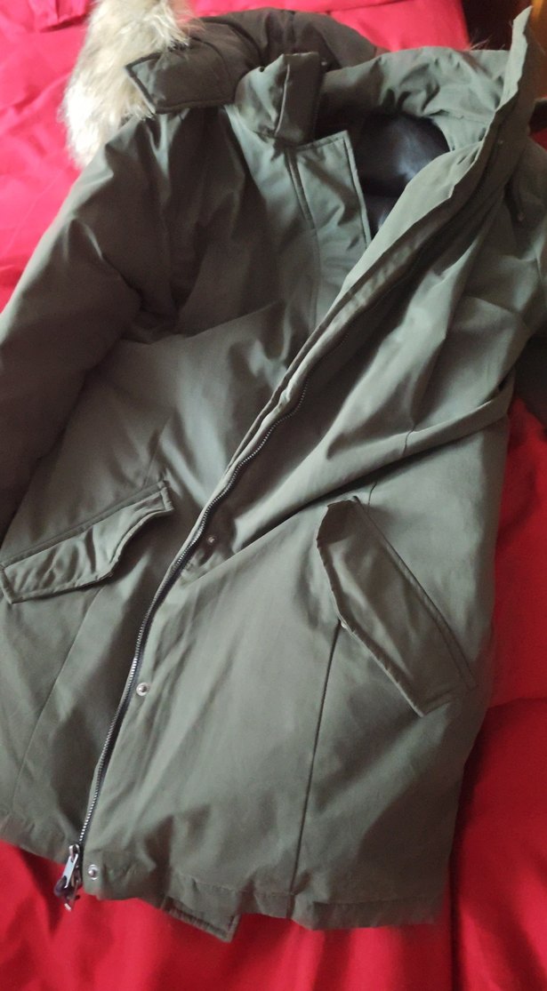 yeşil renkli, fermuarlı, kadın kaban. Uzun kollu, dar kesim kuş tüyü . Günlük kullanıma uygun rahat bir model.