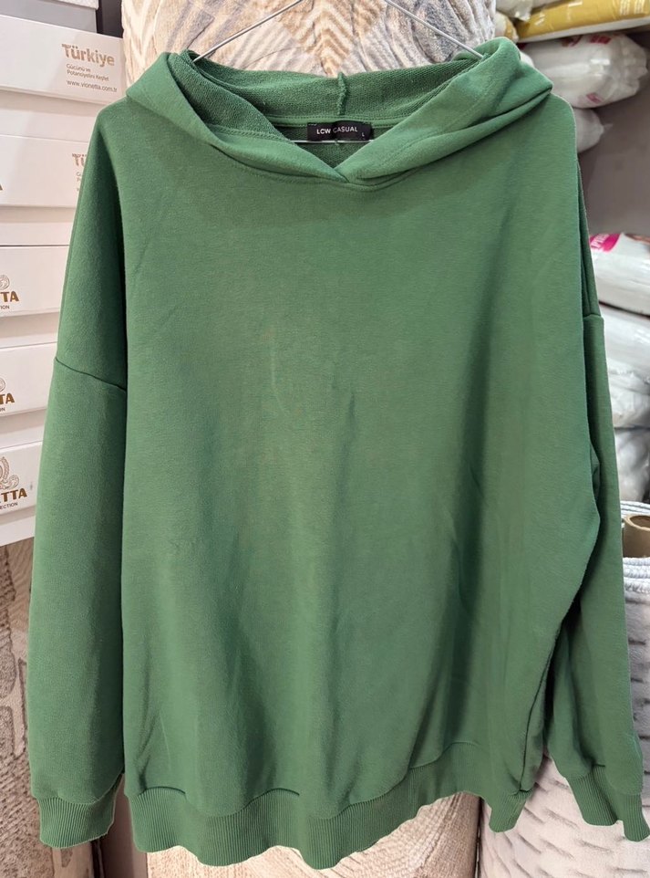 Yumuşak ve sıcak kumaştan, uzun kollu, bol kesim yeşil kadın sweatshirt. Günlük rahatlık için bisiklet yaka ve sade tasarıma sahiptir.