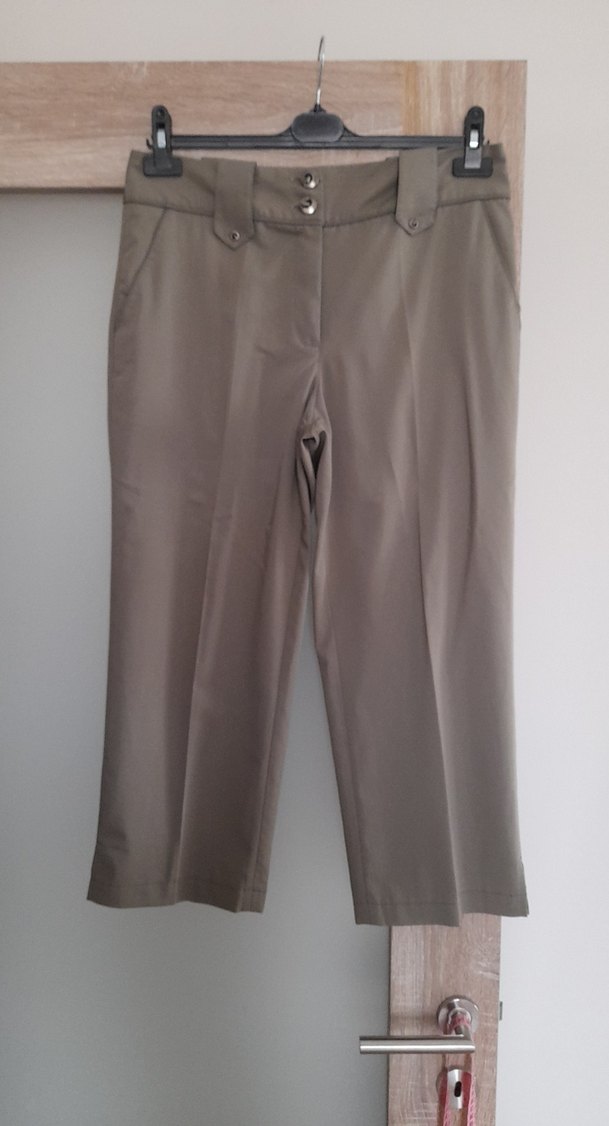 yesil renkli, midi boy, regular fit kadın kumaş pantolon. İpeksi dokulu ve kemerli, iş ve günlük stil için uygun.