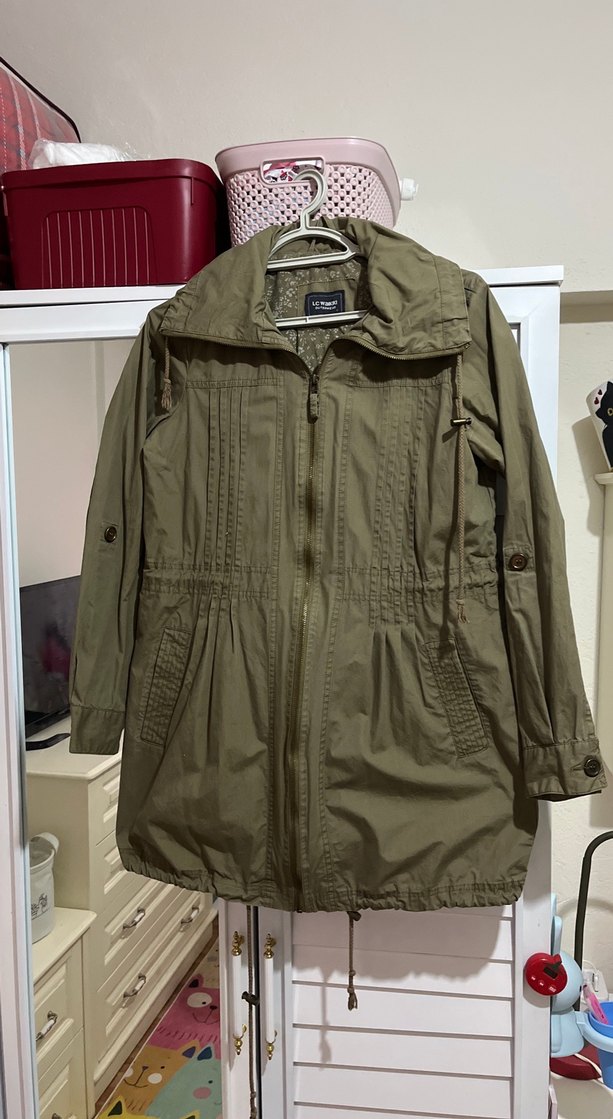 Kemerli beli ve uzun kollu, haki renk kadın mevsimlik mont Rahat kesimiyle günlük sokak stiline uygundur.